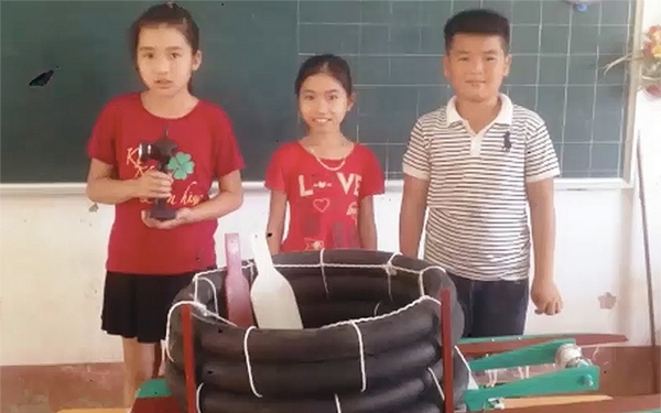 Mô hình của thầy và trò Trường Tiểu học Kiệt Sơn, huyện Tân Sơn với sản phẩm “Bộ phao cứu sinh thông minh”, là sản phẩm thuộc lĩnh vực dụng cụ sinh hoạt gia đình và đồ chơi trẻ em do nhóm học sinh lớp 3 và lớp 4 thực hiện. Khi có tai nạn đuối nước xảy ra, với khoảng cách 100m một người dù không biết bơi cũng có thể hoàn toàn tự tin điều khiển bộ phao cứu sinh thông minh để cứu người. Khi bộ phao hoàn thành tiếp cận, người trên bờ sẽ sử dụng hệ thống tời của thiết bị để kéo người bị nạn lên bờ. Trường hợp người trên bờ không thể thao tác kéo, thì người bị nạn có thể sử dụng mái chèo mi-ni gắn trên phao để di chuyển vào nơi an toàn. Thiết bị trở thành một trong 27 công trình, sản phẩm giành Giải thưởng Tuổi trẻ sáng tạo toàn quốc năm 2018.