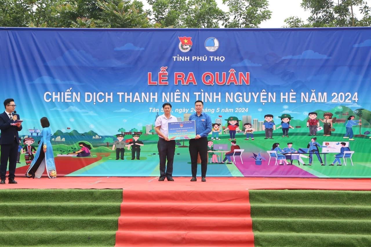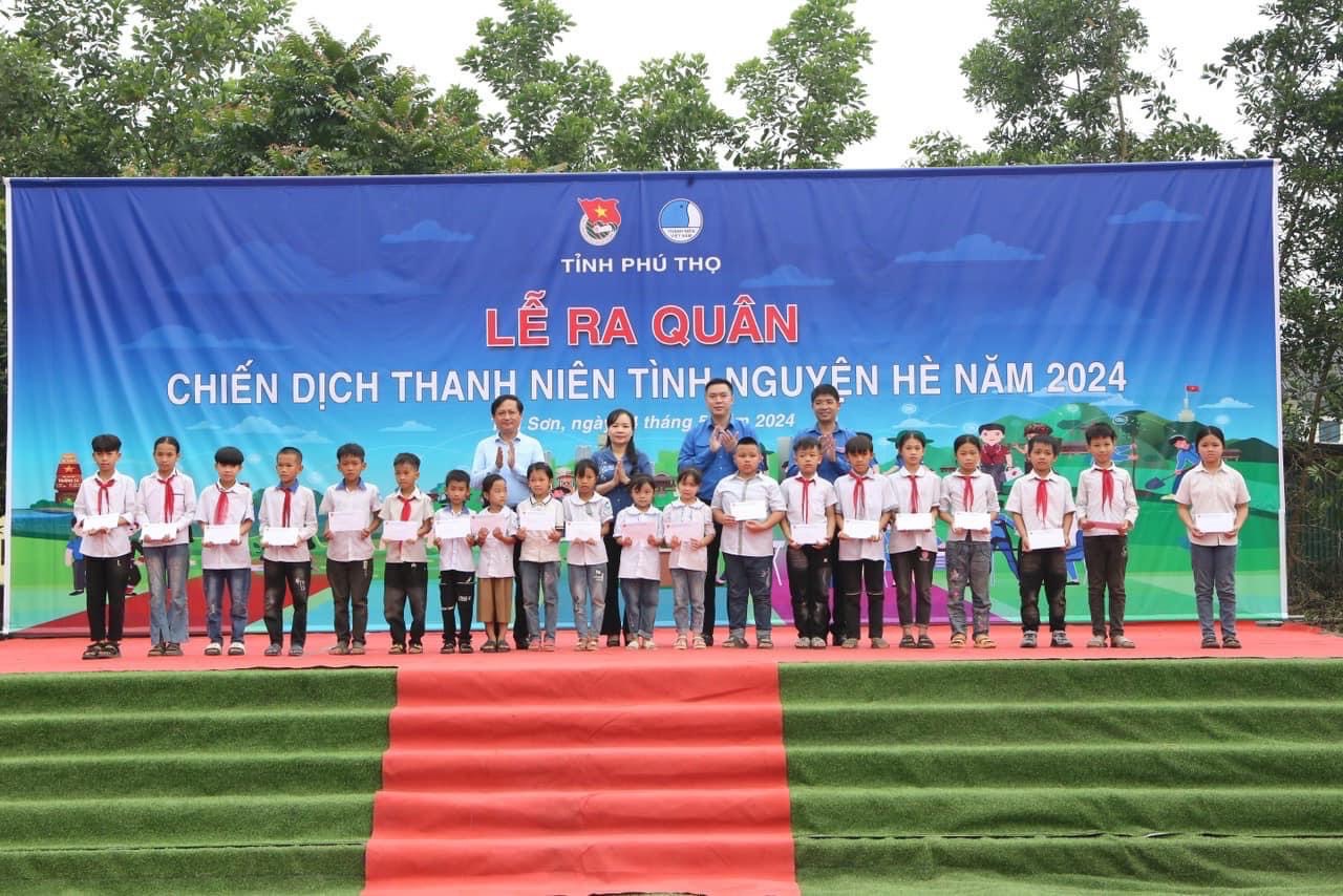 Tại buổi Lễ ra quân, Ban Thường vụ Tỉnh đoàn cùng các đơn vị tổ chức, đơn vị đồng hành trao tặng 70 xuất học bổng, quà tặng cho học sinh nghèo có hoàn cảnh khó khăn; Trao tặng biển 100 thùng mì phở cho học sinh Khu bán trú Trường Phổ thông dân tộc bán trú TH&THCS Vinh Tiền; Trao tặng 50 xuất quà cho gia đình chính sách, gia đình có hoàn cảnh khó khăn tại xã Long Cốc; Trao tặng 40 video clip giới thiệu quảng bá các sản phẩm tiêu biểu gắn với phát triển du lịch huyện Tân Sơn; Trao tặng biển hỗ trợ xây dựng 03 “Nhà vệ sinh cho em” trong trường học tại huyện Tân Sơn; Trao tặng biển nhà Khăn quàng đỏ tại xã Long Cốc; Tổ chức khám chữa bệnh, cấp phát thuốc miễn phí cho nhân dân tại Trạm y tế xã Long Cốc; Tổ chức hoạt động vệ sinh môi trường, chăm sóc cây xanh tại xã Long Cốc.