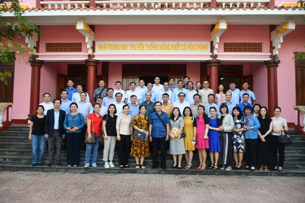Các đồng chí lãnh đạo tỉnh và đoàn công tác chụp hình lưu niệm tại Khu Di tích lịch sử Đồng Khởi, xã Hòa Thịnh