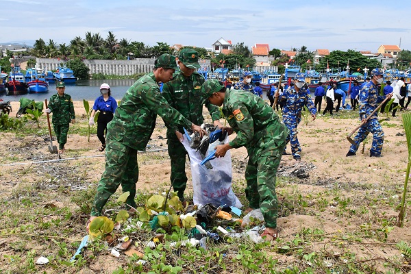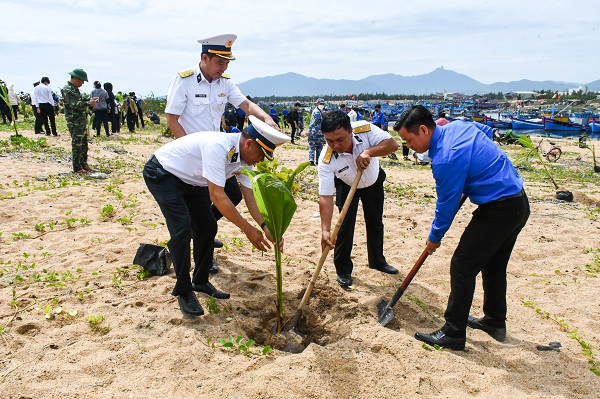 Ngoài ra, các đơn vị cùng với 100 cán bộ, chiến sĩ, đoàn viên, tham niên tham gia chiến dịch làm sạch biển, dọn vệ sinh môi trường và trồng 50 cây dừa ven biển.