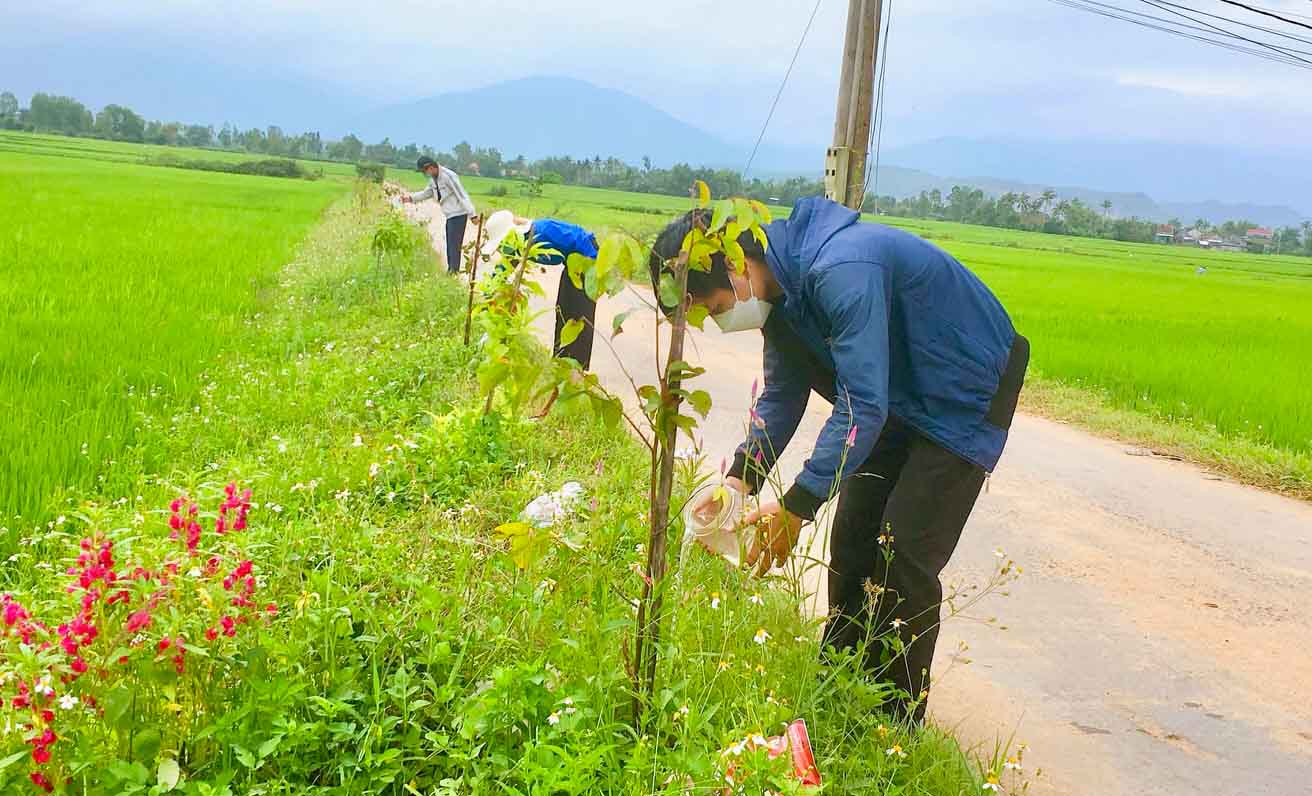 Tuổi trẻ huyện Phú Hòa thực hiện công trình “Đường cây thanh niên” tại xã Hòa Định Tây, huyện Phú Hòa.