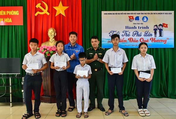 Đoàn trao tặng quà cho học sinh, con em ngư dân có hoàn cảnh khó khăn, thân nhân, gia đình cán bộ, chiến sỹ đang công tác nơi hải đảo.