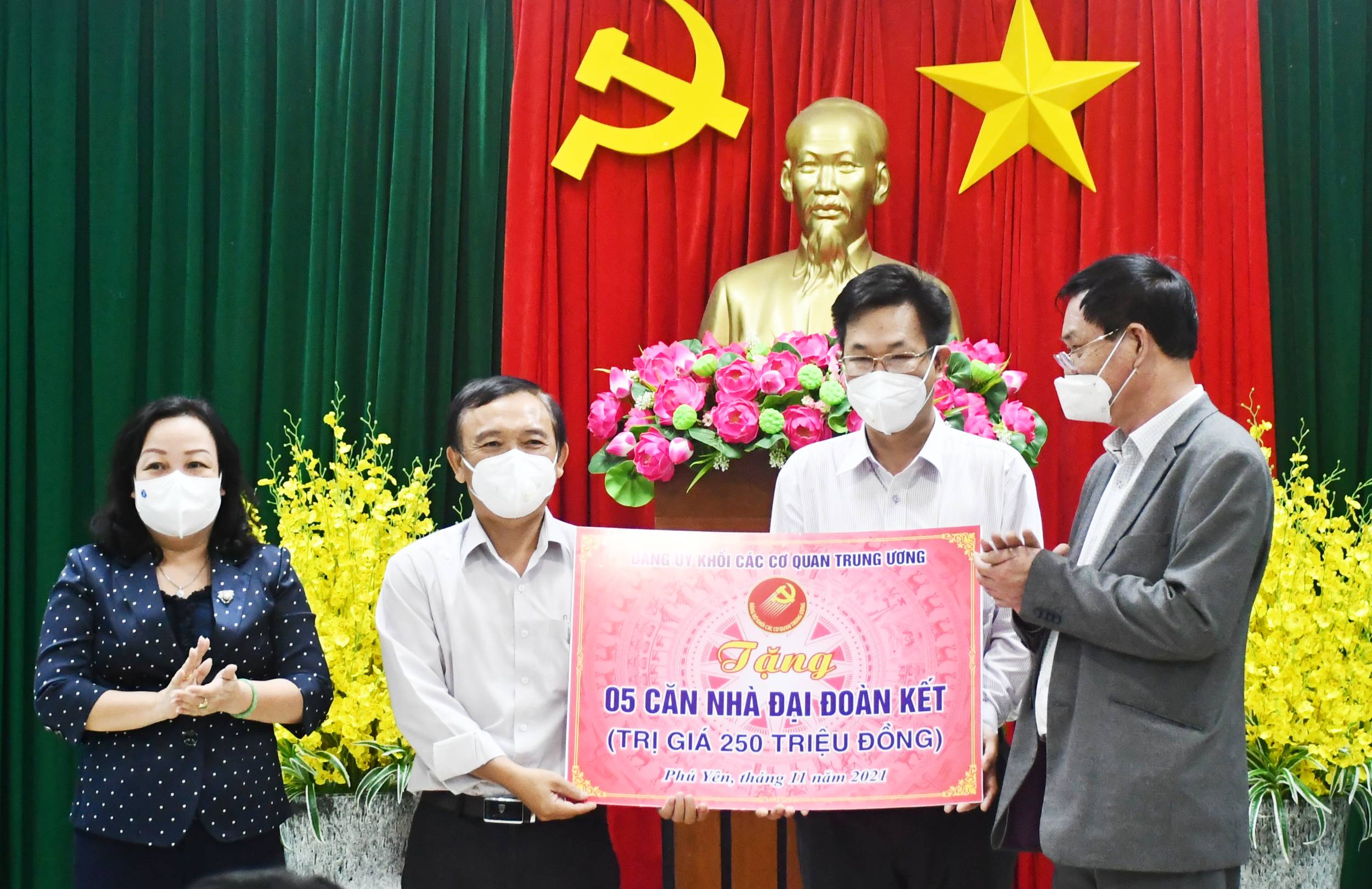 Dịp này, Đảng ủy khối các Cơ quan Trung ương cũng đã hỗ trợ 250 triệu đồng cho Ủy ban Mặt trận Tổ quốc Việt Nam thị xã Đông Hòa (tỉnh Phú Yên) xây dựng 05 căn Nhà đại đoàn kết cho các gia đình chính sách đang gặp khó khăn về nhà ở, trị giá mỗi căn là 50 triệu đồng; trao tặng 100 triệu đồng cho Tỉnh Đoàn Phú Yên thực hiện công trình “Nâng bước cho em đến trường”. Đồng thời, Ủy ban MTTQ Việt Nam cũng đã hỗ trợ 10 triệu đồng cho khu dân cư thôn Cảnh Phước và 5 suất quà (mỗi suất 1 triệu đồng) cho các hộ gia đình khó khăn ở xã Hòa Tân Đông.