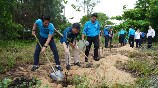 Các đại biểu tham gia thực hiện công trình “Vườn cây thanh niên” tại khuôn viên cơ quan Tỉnh Đoàn.