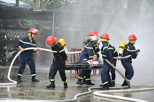 Diễn tập tình huống giả định các biện pháp chữa cháy, cứu hộ, cứu nạn ban đầu, hướng dẫn học sinh di chuyển thoát nạn.