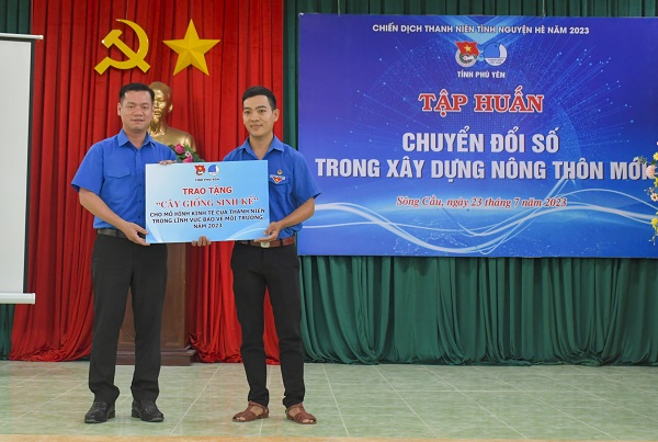 Dịp này, Tỉnh Đoàn, Hội LHTN Việt Nam tỉnh Phú Yên hỗ trợ 02 triệu đồng “Cây giống sinh kế” cho mô hình kinh tế “Vườn sinh thái nông lâm kết hợp” của đồng chí Võ Thái Điền, Bí thư Chi đoàn thôn Bình Tây, xã Xuân Lâm, thị xã Sông Cầu. Đây là mô hình đã được triển khai thực hiện từ năm 2020 đến nay với tổng diện tích đất sản xuất 7 hecta, hiện đang trồng hơn 500 cây ăn quả và 12.500 cây keo, dự kiến trong thời gian tới sẽ trồng mới thêm 200 cây ăn quả.