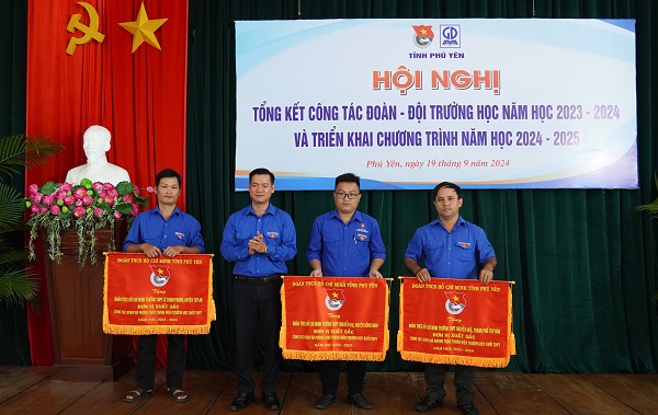 Thường trực Tỉnh Đoàn trao cờ xuất sắc công tác Đoàn và phong trào thanh niên trường học khối THPT năm học 2023 - 2024 cho 3 tập thể.