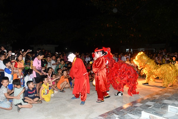 Hoạt động vui chơi biểu diễn múa lân cho các em thiếu nhi.