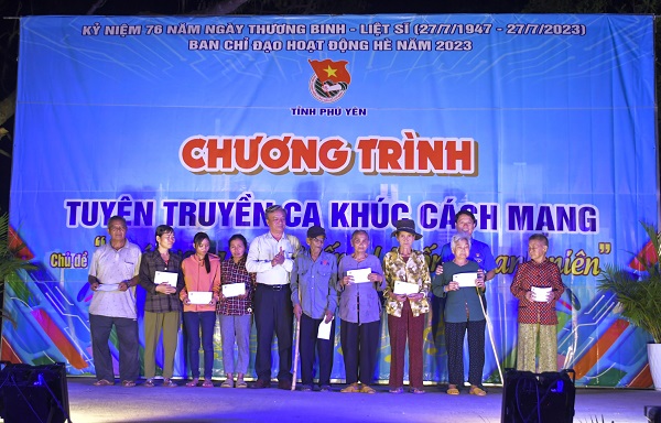 Lãnh đạo Ban Tuyên giáo Tỉnh ủy và Thường trực Tỉnh Đoàn trao quà cho các gia đình chính sách