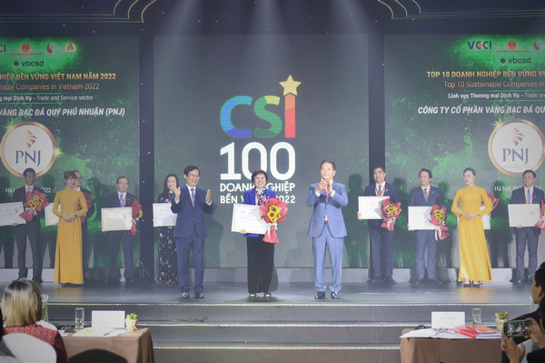 Không chỉ đánh dấu 7 năm liền trụ vững trong Top 10, năm nay, PNJ trở thành đơn vị dẫn đầu top 10 doanh nghiệp lĩnh vực thương mại - dịch vụ trong 100 Doanh nghiệp Phát triển bền vững 2022. Dù gặp nhiều thách thức trong bối cảnh phục hồi sau đại dịch, bằng sự nỗ lực và bứt phá, PNJ đã xuất sắc được vinh danh Top 5 doanh nghiệp cam kết nỗ lực thực hiện bình đẳng giới và quyền phụ nữ tại Việt Nam.