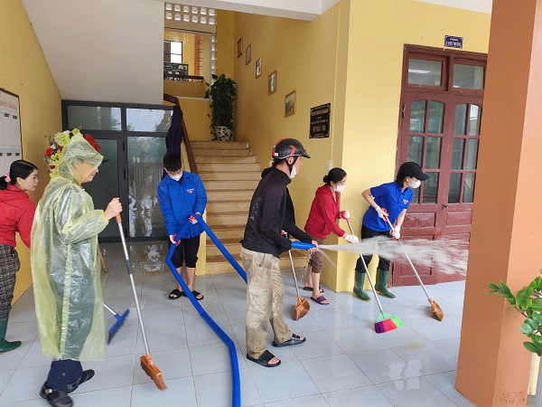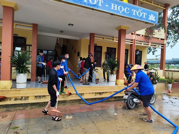 Cũng trong ngày hôm nay, khi nước đang bắt đầu rút, các đội hình thanh niên tình nguyện đã được thành lập và đồng loạt ra quân để kịp thời hỗ trợ bà con nhân dân, các trường học dọn dẹp vệ sinh sau mưa lũ.