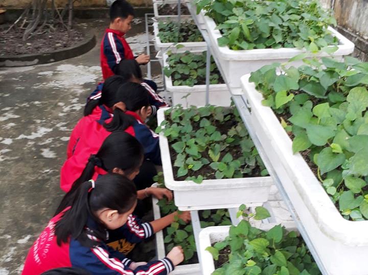 Hàng ngày, vào giờ ra chơi, cô trò lại cùng nhau tưới nước, xới đất, bón phân hoặc thu hoạch rau phục vụ cho trên 100 học sinh bán trú để có thêm nguồn thực phẩm sạch. Số tiền thu được bình quân mỗi năm mỗi lớp trên 250 nghìn đồng đều đưa vào quỹ lớp dành mua sách, vở, đồ dùng học tập tặng học các bạn học sinh nghèo, có hoàn cảnh khó khăn.