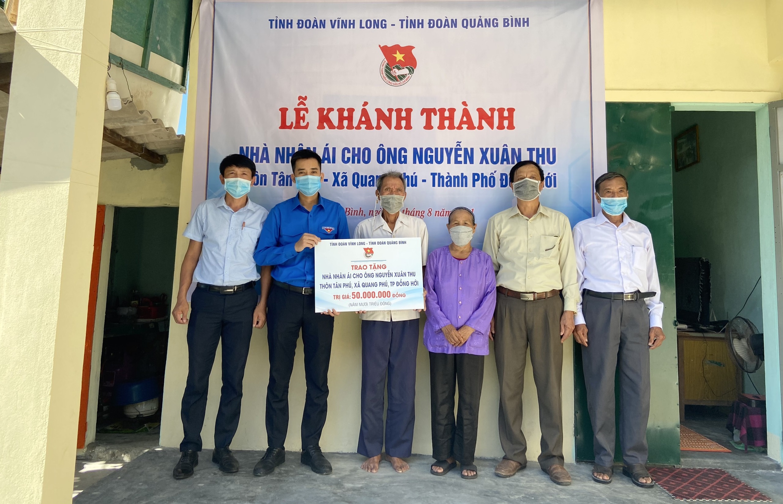 Qua sự kết nối của Tỉnh đoàn Quảng Bình, Tỉnh đoàn Vĩnh Long đã hỗ trợ gia đình ông Nguyễn Xuân Thu 50 triệu đồng để làm lại căn nhà mới. Cùng với sự chung tay góp sức của chính quyền địa phương, bà con lối xóm và người thân, gia đình ông Thu đã làm được căn nhà mới với tổng diện tích 50m2, trị giá gần 100 triệu đồng.