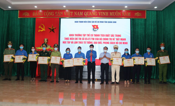 Tiêu biểu có các cá nhân Nguyễn Lê Trâm (Phó Bí thư Đoàn trường đại học Quảng Bình), Võ Quang Tài (Bí thư Đoàn cơ sở Công an huyện Lệ Thủy), Đỗ Văn Phúc (Bí thư Đoàn xã Hưng Trạch, huyện Bố Trạch) vinh dự được trao giải thưởng Lý Tự Trọng; Cao Thanh Tình (Bí thư Đoàn cơ sở Dược phẩm Quảng Bình) được tuyên dương 500 đảng viên trẻ tiêu biểu toàn quốc; 8 tấm gương có hành động dũng cảm cứu người gặp nạn, 30 giáo viên trẻ tiêu biểu, 30 học sinh nghèo vượt khó học giỏi, 30 thanh niên làm theo lời Bác được tuyên dương khen thưởng…