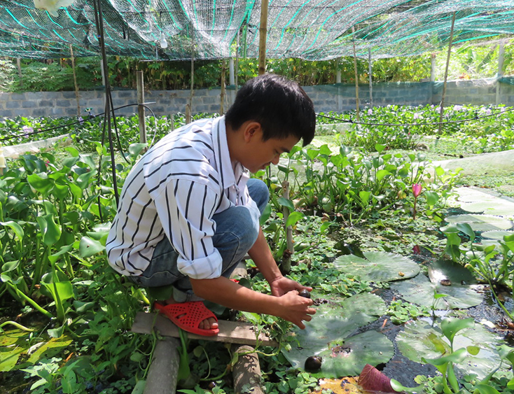 Mô hình nuôi ốc bươu đen mang lại hiệu quả kinh tế cao cho gia đình anh Dương Văn Long