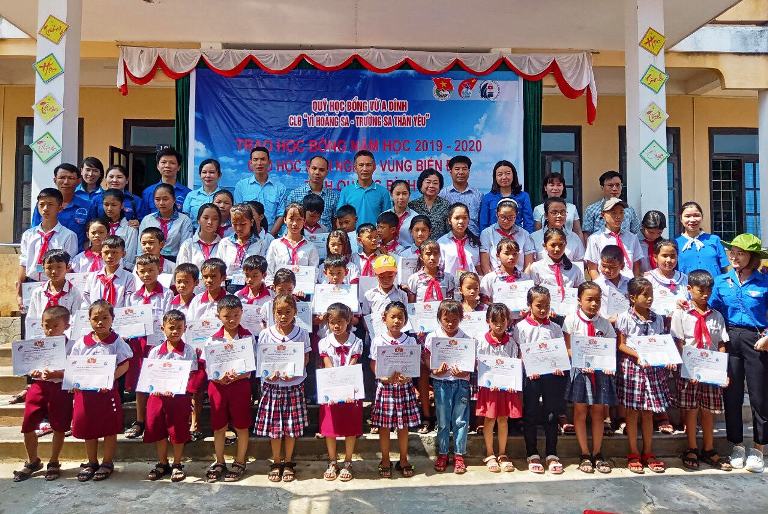 Web.ĐTN: Sáng 4/10, tại huyện Bố Trạch, Quỹ học bổng Vừ A Dính và CLB “Vì Hoàng Sa - Trường Sa thân yêu” phối hợp với Ban Thường vụ Tỉnh Đoàn Quảng Bình tổ chức trao tặng học bổng cho các em học sinh dân tộc thiểu số và vùng ven biển.