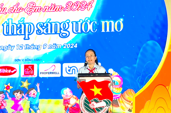 Phát biểu tại Chương trình, đồng chí Hồ Thị Thu Thanh, Phó Bí thư Tỉnh đoàn, Chủ tịch Hội đồng đội tỉnh chia sẻ những tình cảm đặc biệt dành cho các em thiếu nhi tại các tỉnh miền Bắc đang chịu ảnh hưởng bởi cơn bão số 3 và cho biết nhiều chương trình dịp Tết Trung thu tại Quảng Ngãi đã được tạm hoãn để chia sẻ khó khăn với đồng bào miền Bắc đang bị ảnh hưởng do bão lũ gây ra. Đồng thời, kêu gọi sự quan tâm đến với thiếu nhi ở các tỉnh miền Bắc nói riêng và đồng bào miền Bắc nói chung, để trẻ em được quan tâm và phát triển toàn diện nhất.