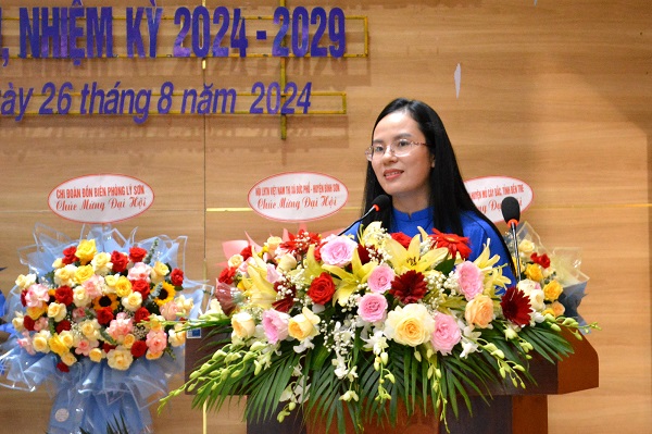 Phát biểu tại đại hội, đồng chí Đỗ Thành Tân, Phó Bí thư Thường trực Huyện ủy, Chủ tịch HĐND huyện Lý Sơn và chị Hồ Thị Thu Thanh, Phó Bí thư Tỉnh đoàn, Chủ tịch Hội LHTN Việt Nam tỉnh đã đánh giá cao những kết quả mà Hội LHTN huyện đã dành được trong thời gian qua, đồng thời mong muốn thời gian tới Hội cần tiếp tục phát huy những kết quả đã đạt được, làm tốt công tác giáo dục chính trị, tư tưởng cho cán bộ, đoàn viên thanh niên trên địa bàn. Đổi mới và nâng cao chất lượng hoạt động của tổ chức Hội. Triển khai và thực hiện có hiệu quả các phong trào. Trong đó có phong trào Tôi yêu tổ quốc tôi, xem đây là điểm nhấn của tổ chức. Tích cực động viên thanh niên tham gia khởi nghiệp. Tìm các giải pháp để hỗ trợ thanh niên phát triền kinh tế.
