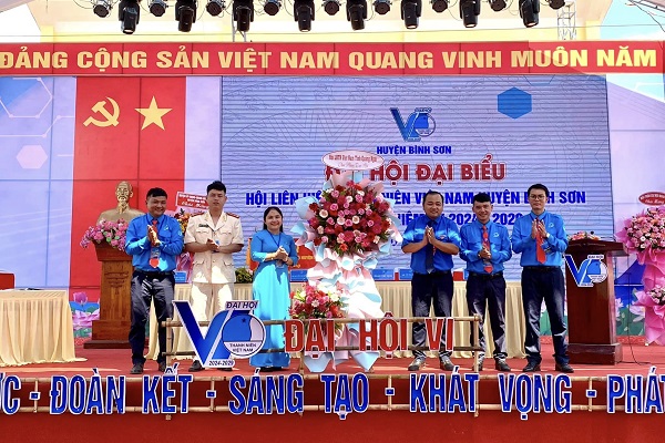Ông Võ Văn Đồng, Bí thư Huyện ủy Bình Sơn trao tặng đại hội bức trướng Ban Chấp hành Huyện ủy Bình Sơn mang dòng chữ "Thanh niên Bình Sơn Yêu nước - Đoàn kết - Sáng tạo - Khát vọng - Phát triển góp phần xây dựng huyện Bình Sơn giàu đẹp, văn minh, nghĩa tình.