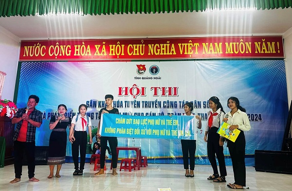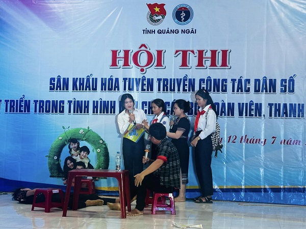 Hội thi sân khấu hóa liên quan đến các nội dung đẩy lùi nạn tảo hôn, hôn nhân cận huyết thống, giáo dục giới tính, sức khỏe sinh sản tại huyện Minh Long được tổ chức nhằm nâng cao nhận thức của đoàn viên, hội viên, thanh, thiếu niên về công tác dân số và phát triển trong tình hình mới theo tinh thần Nghị quyết số 21-NQ/TW ngày 25/10/2017 của Ban chấp hành Trung ương Đảng khóa XII.