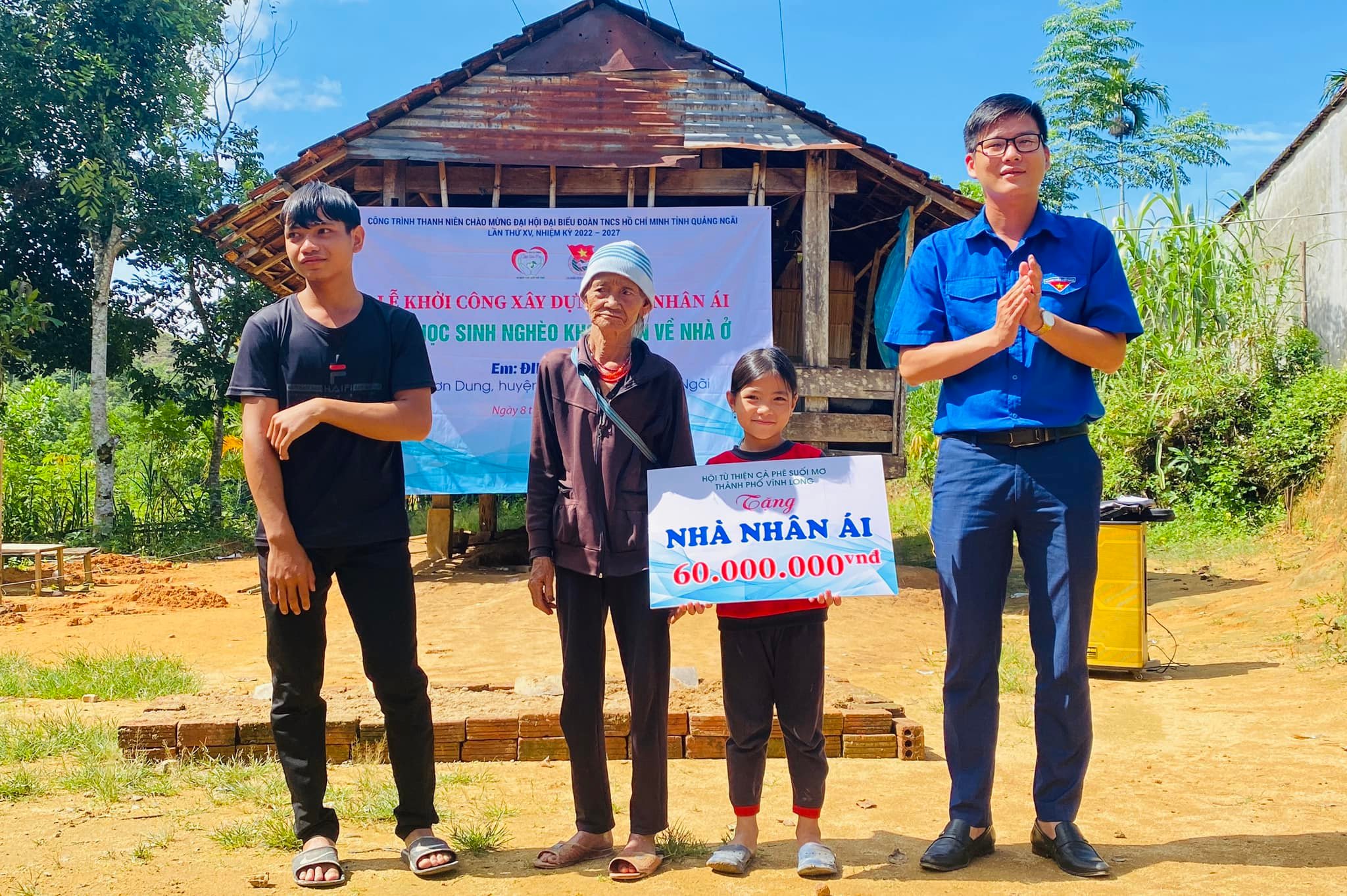 Từ nguồn hỗ trợ 110 triệu đồng, gồm UBMTTQ Việt Nam tỉnh Quảng Ngãi 50 triệu đồng xây dựng nhà ở, Hội từ thiện Càfê Suối Mơ, tỉnh Vĩnh Long hỗ trợ 60 triệu đồng, trong đó, 50 triệu dùng xây dựng nhà ở, 10 triệu đồng dùng mua sắm đồ dùng thiết yếu trong gia đình.