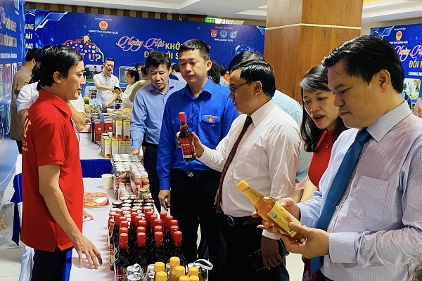 Đoàn viên thanh niên tìm hiểu thông tin về các sản phẩm khởi nghiệp, sản phẩm OCOP.