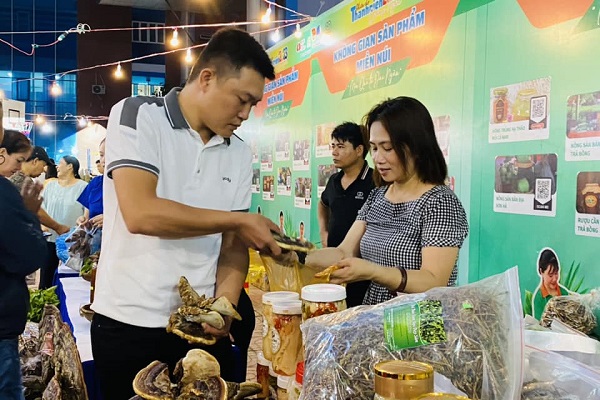 Khách hàng tìm mua các sản phẩm miền núi tại Phiên chợ.