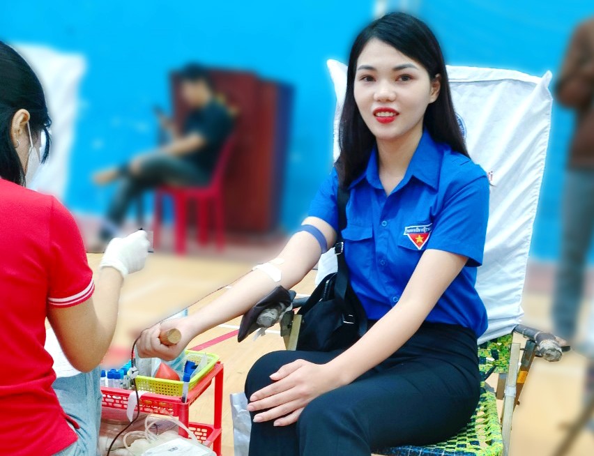 Phó Bí thư Đoàn xã Nghĩa Hòa Trần Thị Quyên tham gia hiến máu tình nguyện
