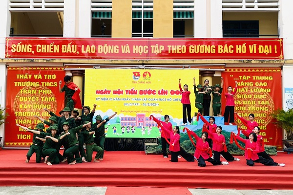 Phát biểu tại Ngày hội, chị Hồ Thị Thu Thanh, Phó Bí thư Tỉnh đoàn, Chủ tịch Hội đồng Đội tỉnh cho biết, trong buổi sáng, Đội TNTP Hồ Chí Minh trên cả nước tổ chức sự kiện đặc biệt để chào mừng kỷ niệm 93 năm Ngày thành lập Đoàn TNCS Hồ Chí Minh, tất cả liên đội khối THCS tổ chức đồng loạt Ngày hội “Tiến bước lên Đoàn” cùng sự kiện xác lập kỷ lục Việt Nam với màn đồng diễn sân trường trên nền nhạc bài hát “Tiến bước lên Đoàn và Khi nào mình lớn”.