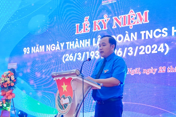 Phát biểu tại buổi lễ, Phó Bí thư Thường trực Tỉnh đoàn Lê Văn Vin nhấn mạnh, năm 2024, đánh dấu chặng đường 93 năm lịch sử vẻ vang của Đoàn TNCS Hồ Chí Minh và tuổi trẻ Việt Nam nói chung và Quảng Ngãi nói riêng. Đây là dịp để mỗi ĐVTN ôn lại lịch sử, truyền thống hào hùng của Đoàn TNCS Hồ Chí Minh; khẳng định vị trí, vai trò, niềm tự hào, vinh dự là người đoàn viên TNCS Hồ Chí Minh. Đồng thời, thể hiện trách nhiệm và vai trò của tuổi trẻ trong việc kế thừa và phát huy truyền thống, xung kích, sáng tạo góp phần thực hiện Nghị quyết Đại hội đại biểu Đoàn TNCS Hồ Chí Minh tỉnh Quảng Ngãi lần thứ XV, Nghị quyết Đại hội Đoàn toàn quốc lần thứ XII, nhiệm kỳ 2022 - 2027.