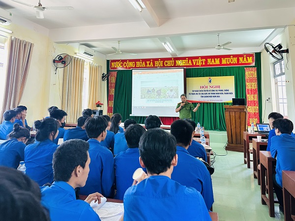 Tại hội nghị, báo cáo viên Thiếu tá Phan Tấn Ninh, Phó Đội trưởng Phòng Cảnh sát điều tra tội phạm ma tuý, Công an tỉnh đã thông tin cho các đại biểu, đoàn viên, học sinh về tình hình buôn bán và sử dụng ma túy hiện nay; tình hình các loại hình tội phạm, ma túy, mại dâm, HVI/AIDS; những hiểu biết chung về ma túy; các văn bản quy phạm pháp luật; khung hình phạt về tội phạm ma túy; dấu hiệu người nghiện ma túy, cách cai nghiện, trình tự đi cai nghiện, quản lý sau cai nghiện; phương thức lãnh đạo, quan điểm chỉ đạo của Đảng, Nhà nước đối với công tác phòng chống ma túy; các giải pháp phòng chống tội phạm, ma túy, mại dâm, HIV trong giai đoạn hiện nay...