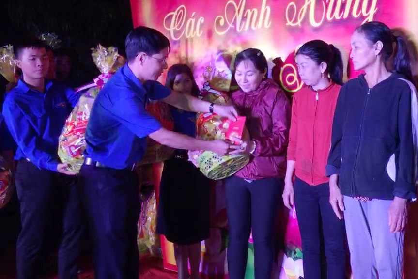 Anh Đặng MinhThảo - Bí thư Tỉnh đoàn trao quà tết cho các gia đình chính sách