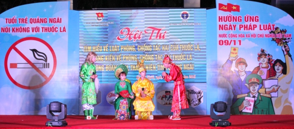 Tối ngày 08/11, hơn 500 ĐVTN đến từ các Đoàn cơ sở của Tỉnh đoàn Quảng Ngãi đã tham dự Hội thi tìm hiểu Luật Phòng, chống tác hại của thuốc lá, sáng kiến về phòng, chống tác hại của thuốc lá, tại sân Trung tâm hoạt động Thanh thanh thiếu nhi Diên Hồng, TP Quảng Ngãi.