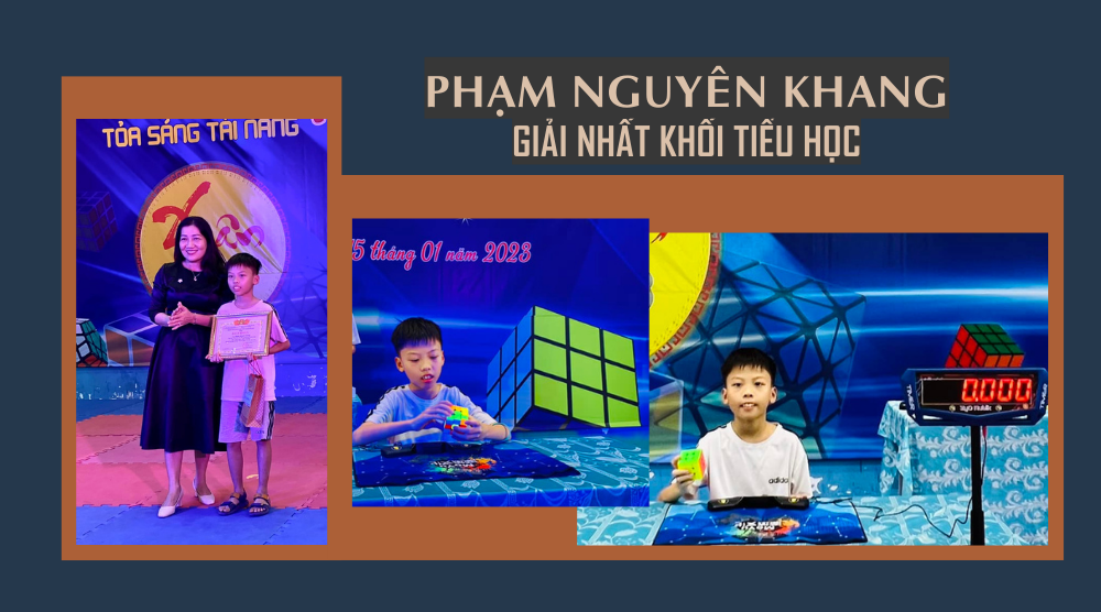 Chung cuộc, với tổng thời gian giải 2 khối rubik 3x3 và 4x4 là 50,801 giây, đấu thủ Võ Nguyên Phát (xã Nghĩa Trung, Tư Nghĩa) đã xuất sắc đoạt giải nhất khối học sinh THCS; giải nhất khối THPT thuộc về đấu thủ Trần Nguyên Bách (THPT Võ Nguyên Giáp, TP.Quảng Ngãi) với thời gian giải là 52,852 giây; em Phạm Nguyên Khang (TH Trần Phú, TP.Quảng Ngãi) giải nhất khối TH với tổng thời gian là 107,016 giây.
