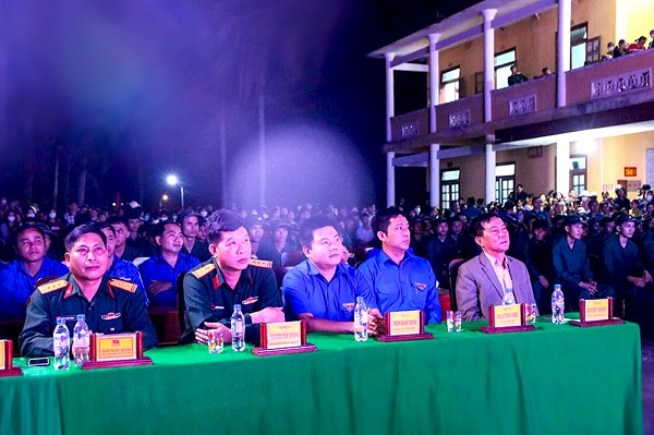 Chương trình diễn ra trong không khí tươi vui, sôi nổi với các tiết mục văn nghệ đặc sắc ca ngợi hình ảnh người lính và quê hương, đất nước do Đội văn nghệ xung kích Huyện đoàn Sơn Hà dàn dựng và biểu diễn.