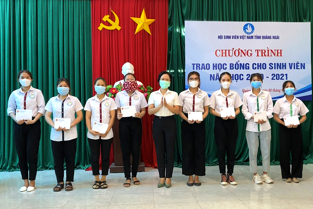 Chia sẻ với các em tại lễ trao học bổng, chị Nguyễn Thị Hằng, ủy viên Ban Thường vụ Tỉnh đoàn, Phó Chủ tịch Hội Sinh viên Việt Nam tỉnh Quảng Ngãi cho biết, do năm nay tình hình COVID-19 diễn biến phức tạp, các em nên hạn chế đi lại để cùng Chính phủ chung tay chống dịch. Vì cuộc sống, các em phải đi tìm việc để làm thêm nên cũng cần phải chú trọng các biện pháp an toàn trong việc phòng, chống dịch để tự bảo vệ bản thân, gia đình và cộng đồng.