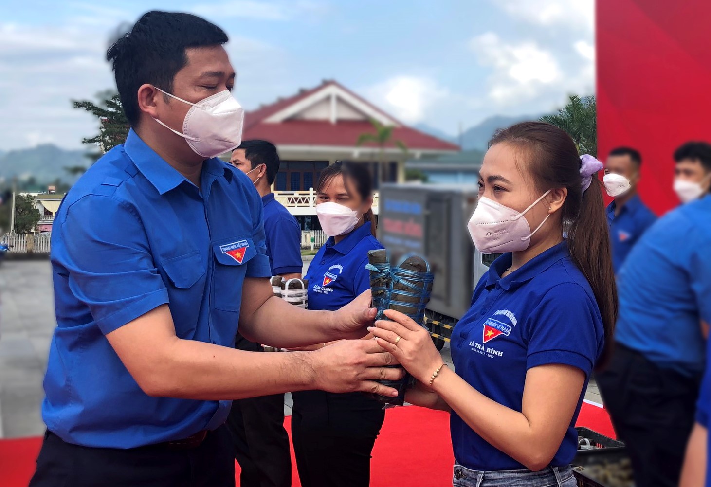 Trong khuôn khổ chương trình “Xuân yêu thương”, Vietcombank Quảng Ngãi, Tỉnh đoàn, Hội LHTN Việt Nam tỉnh cũng dành tặng 100 suất quà cho các gia đình có hoàn cảnh khó khăn tại huyện Trà Bồng mỗi suất quà gồm 300 ngàn đồng và 2 cây bánh tét; 250 bộ áo ấm cho thiếu nhi tại huyện Trà Bồng và huyện Sơn Tây.