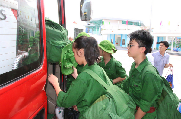 Các em học sinh tham gia chương trình “Học hè quân đội” khóa I xuất quân
