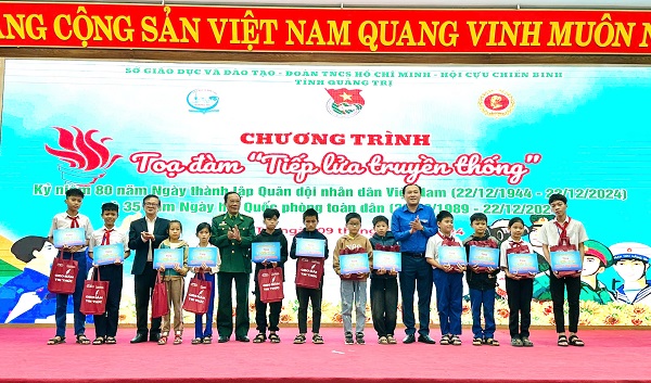 Dịp này, Ban Tổ chức đã trao 20 phần quà và 20 chiếc xe đạp cho học sinh là con, em thân nhân của các Cựu chiến binh có hoàn cảnh khó khăn vươn lên trong học tập trị giá 40 triệu đồng từ Chương trình “Gieo mầm tri thức” của Báo Tuổi trẻ do ngân hàng Agribank chi nhánh Phú Nhuận (TP. Hồ Chí Minh) tài trợ.