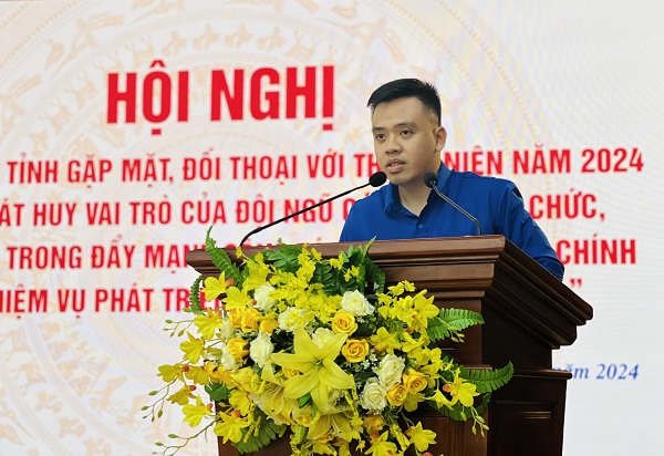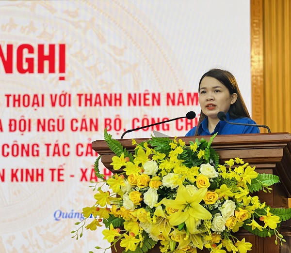 Đồng chí Trần Thị Thu - Bí thư Tỉnh Đoàn bày tỏ lời cảm ơn sâu sắc đến đồng chí Chủ tịch UBND tỉnh, đại diện lãnh đạo các sở, ban, ngành đã dành thời gian gặp mặt đối thoại, lắng nghe những nguyện vọng, đề xuất của cán bộ, công chức, viên chức trẻ.