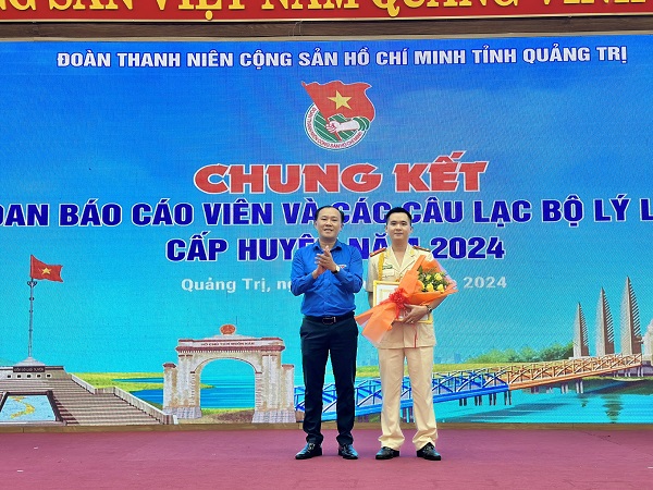Đồng thời, Ban Tổ chức cũng đã trao giải Báo cáo viên xuất sắc cho đồng chí Hoàng Nhật Quang đến từ CLB Lý luận trẻ Ban Thanh niên Công an tỉnh, giải Báo cáo viên triển vọng cho đồng chí Đinh Thị Thanh Bình đến từ CLB Lý luận trẻ huyện Đoàn Triệu Phong.