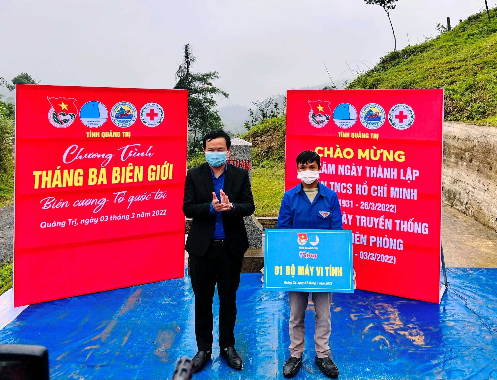 BTV Tỉnh Đoàn - Ban Thư ký Hội LHTN VN tỉnh tặng Đoàn cơ sở xã Ba Nang 01 bộ máy vi tính