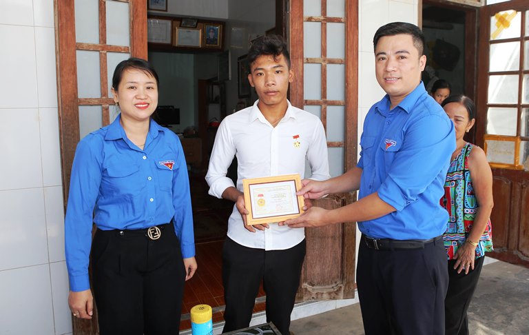 Tuy nhiên, do tình hình lũ lụt tại Quảng Trị đang diễn biến hết sức phức tạp, cho nên sáng nay, Đoàn công tác của Tỉnh Đoàn đã trao huy hiệu "Tuổi trẻ dũng cảm" của Trung ương Đoàn cho đồng chí Trần Xuân Cường, thôn Tân Xuân, xã Gio Việt, huyện Gio Linh và đồng chí Phan Xuân Đức, đoàn viên chi đoàn thôn Phú Hội, xã Triệu An, huyện Triệu Phong; đồng chí Lê Xuân Trí, đoàn viên chi đoàn thôn Mỹ Lộc, xã Triệu Hòa, huyện Triệu Phong và Nguyễn Hữu Tùng, cán bộ Công an huyện Triệu Phong đang bị cô lập do nước ngập sâu nên sẽ trao trong thời gian tới.