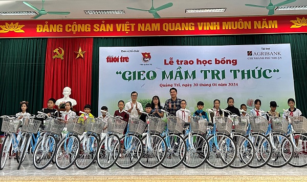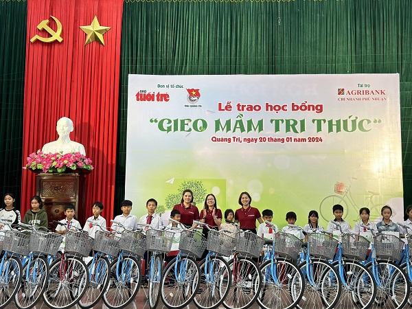 ĐTN: Sáng ngày 20/01, Ban Thường vụ Tỉnh Đoàn phối hợp với Báo Tuổi trẻ và Ngân hàng Nông nghiệp và Phát triển nông thôn Việt Nam chi nhánh Phú Nhuận tổ chức Lễ trao học bổng “Gieo mầm tri thức” cho 200 em học sinh có hoàn cảnh khó khăn vươn lên học giỏi tại thị xã Quảng Trị và huyện Hải Lăng.