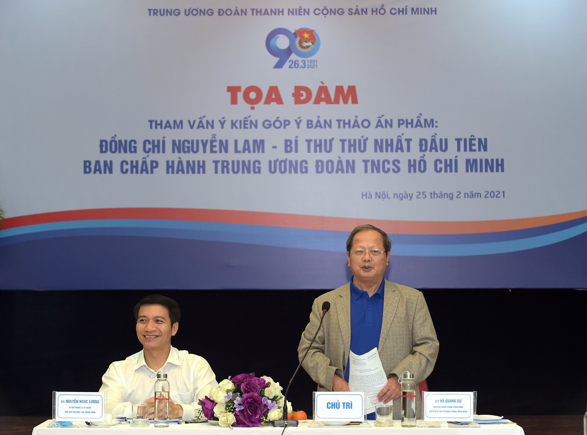 Đồng chí Hà Quang Dự, nguyên Ủy viên T.Ư Đảng, nguyên Bí thư thứ nhất T.Ư Đoàn: nhấn mạnh, xuất bản cuốn sách “Đồng chí Nguyễn Lam – Bí thư thứ nhất đầu tiên Ban Chấp hành Trung ương Đoàn TNCS Hồ Chí Minh” là 1 sự kiện rất quan trọng nằm trong chương trình kỷ niệm 90 năm thành lập Đoàn. Đồng chí Hà Quang Dự tán thành với các ý kiến góp ý tại buổi tọa đàm; đồng thời, chia sẻ với những khó khăn của Tổ biên soạn trong quá trình hoàn thiện cuốn sách. Đồng chí Hà Quang Dự nhấn mạnh: “Đồng chí Nguyễn Lam là tấm gương về một người Cộng sản có đức, có tài; là một người thanh niên giàu nhiệt huyết, luôn trung thành với lý tưởng cách mạng; một cán bộ Đoàn tận tụy, sáng tạo, xây dựng và thúc đẩy phong trào thanh niên phát triển. Đọc bản thảo cuốn sách, tôi bị cuốn hút bởi sự say mê, sáng tạo của đồng chí trong bất cứ hoàn cảnh khó khăn nào”.