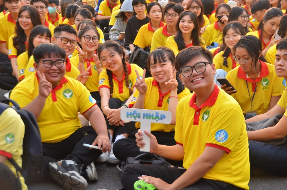 Các bạn sinh viên đầy phấn khởi trong lễ ra quân
