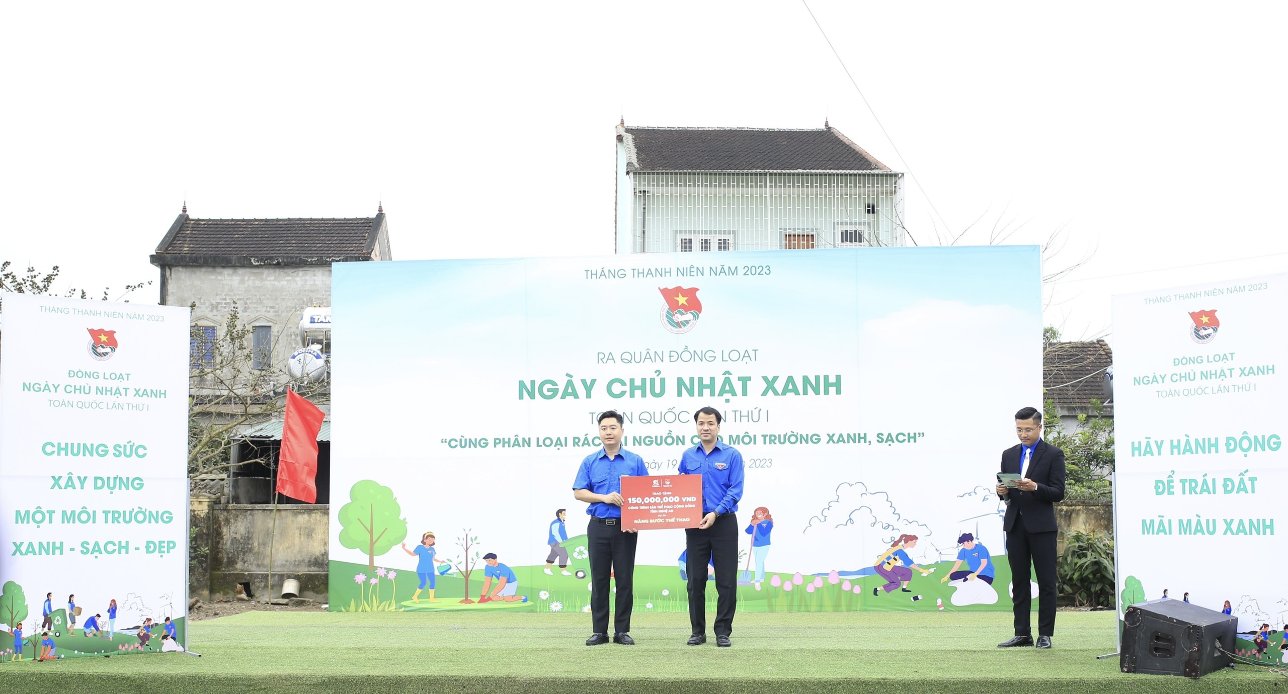 Đồng chí Ngô Văn Cương - Bí thư BCH Trung ương Đoàn trao hỗ trợ cho tỉnh đoàn Nghệ An 01 sân chơi cộng đồng trị giá 150 triệu đồng