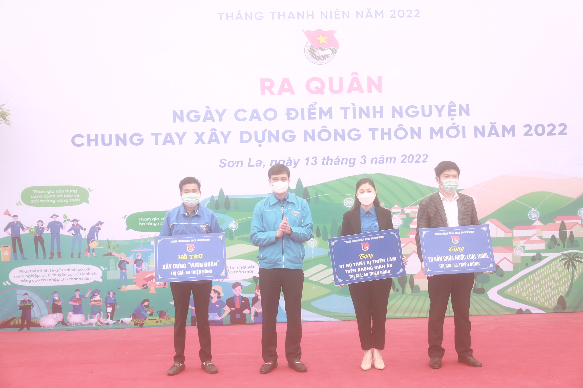 Nhân dịp này, Trung ương Đoàn trao tặng cho tỉnh Sơn La 1 mô hình “Vườn Đoàn” trị giá 50 triệu đồng; 100 túi an sinh trị giá 25 triệu đồng; 20 Bồn chứa nước (loại 1000 lít) trị giá 55 triệu đồng; 1 bộ thiết bị “Sàn nông sản trong vũ trụ ảo Metasquare” trị giá 40 triệu đồng.
