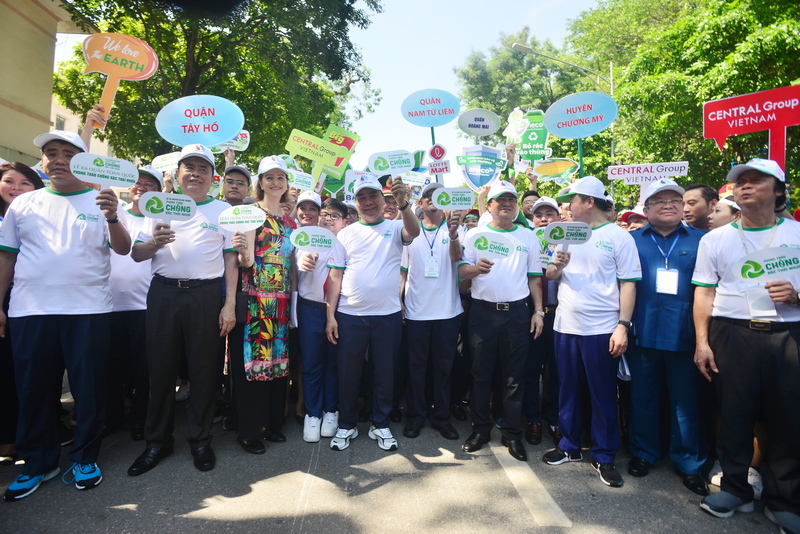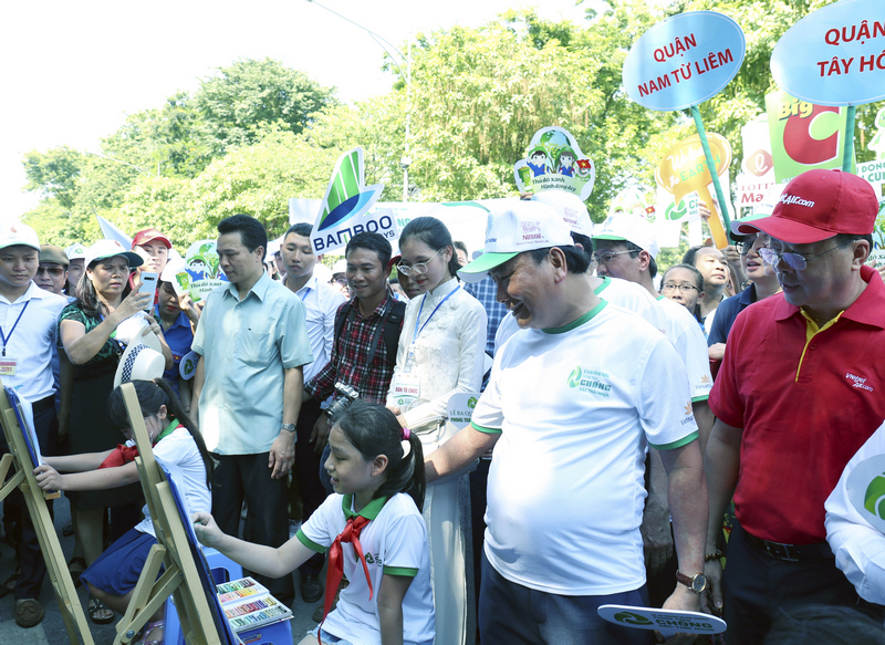 Thủ tướng Nguyễn Xuân Phúc cùng các đồng chí lãnh đạo đi bộ tuần hành kêu gọi cộng đồng chung tay chống rác thải nhựa