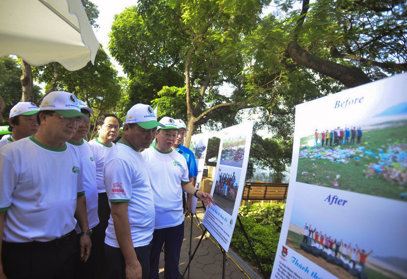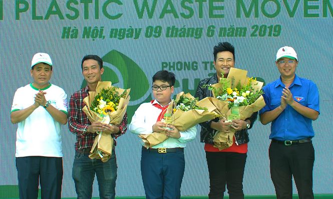 Chủ tịch UBND thành phố Hà Nội Nguyễn Đức Chung và Bí thư thứ nhất T.Ư Đoàn Lê Quốc Phong tặng hoa, biểu trưng cho các đại sứ phong trào chống rác thải nhựa. Trong số các đại sứ, Nguyễn Như Khôi - Phó chủ tịch Hội đồng trẻ em thành phố Hà Nội là một trong những gương mặt trẻ tuổi nhất